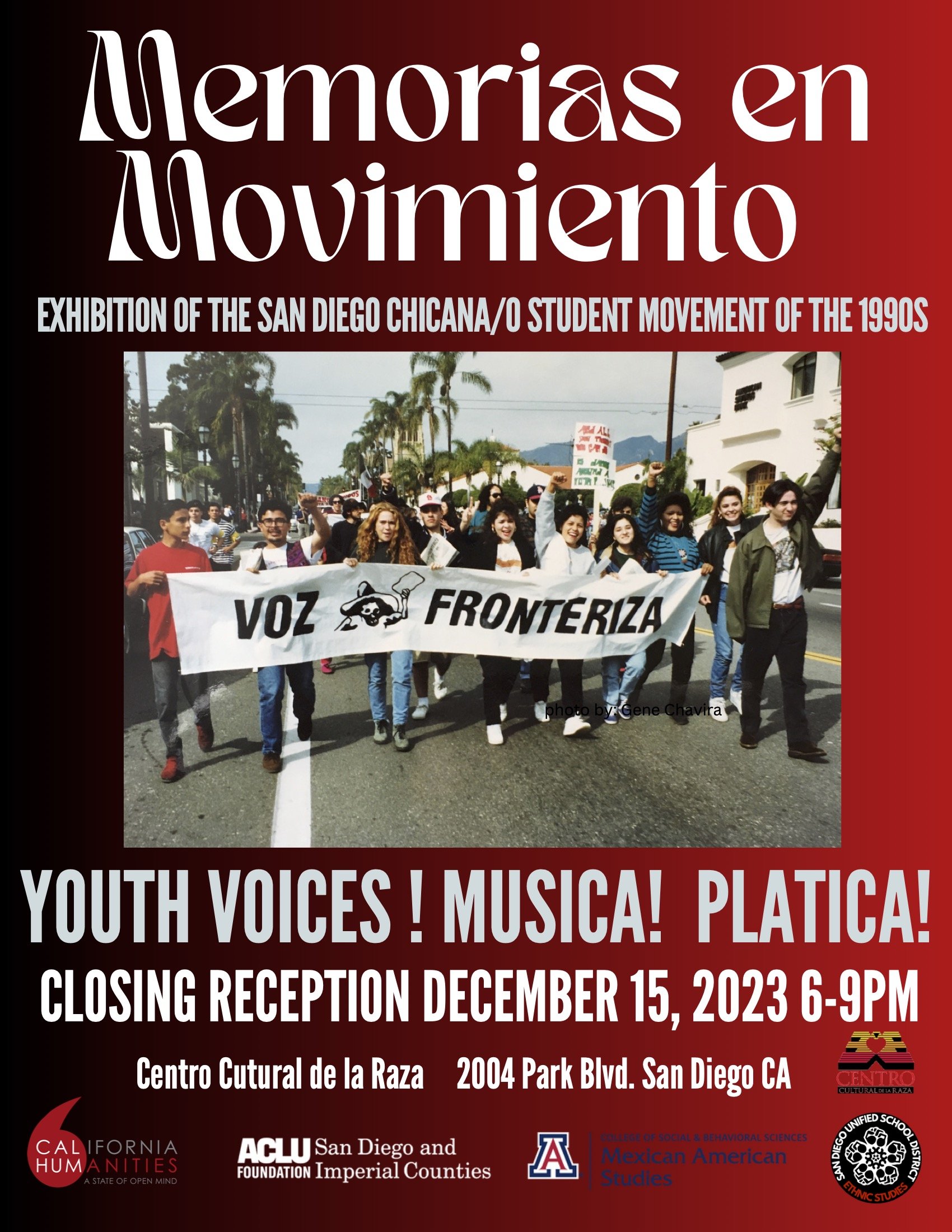 In the 1990s, Chicana/o students across California organized around issues of the time - state legislation that impacted communities of color, the struggle for representation in the educational system and a fight to reveal the legacies of colonialism in the region. Focusing on San Diego, Memorias en Movimiento - in partnership with the Centro Cultural de la Raza - will host an intergenerational symposium to bring activists and artists of that time together with contemporary leaders and community members. Alongside the panel of speakers, will be an exhibit of photos and other memorabilia of this generation’s movement work and contributions. This exhibit was inspired by Adolfo’s recent podcast titled, “Forgotten Revolutionary” which profiled the activism of early 1990s Chicano activist and radio DJ Oscar Gomez.